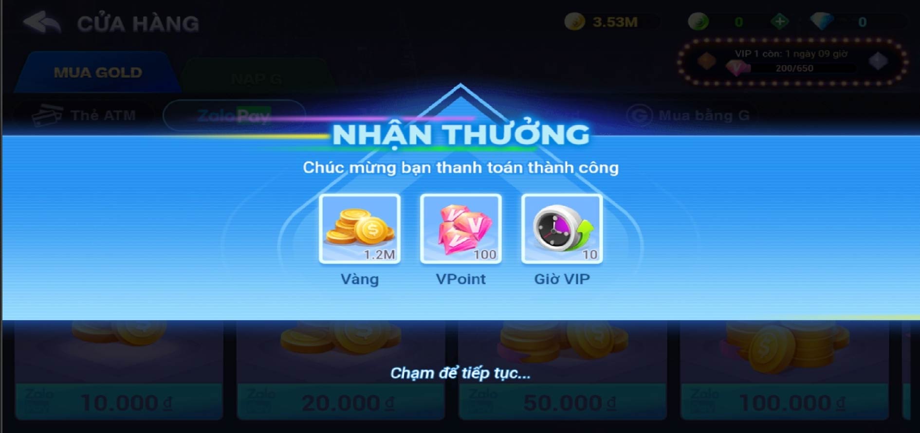 Bước 4: Thanh toán thành công, nhận ngay vật phẩm xịn. Đồng thời, sau khi xác nhận liên kết ví thành công, ở những lần thanh toán sau, Cao Thủ chỉ cần 1 chạm “Đồng ý” là đã hoàn tất quá trình thanh toán rồi đó !!! Quá nhanh, quá đơn giản.